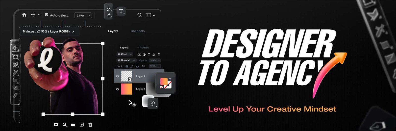 لو أنت مصمم جرافيك وعايز تطوّر شغلك وتتنقل لمستوى الشركات والوكالات الإعلانية، فـ كورس Designer to Agency هو رحلتك العملية...